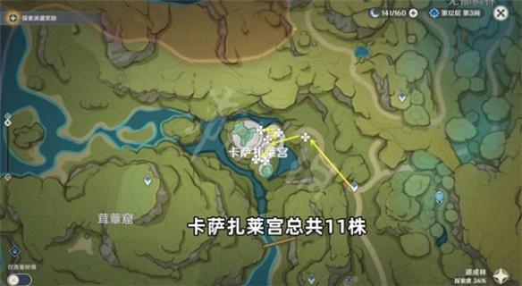 須彌城北邊的傳送點旁邊有1株,順著小路向須彌城的方向走,路過一片田地,葯農瓦爾坦的田地里有2株。到這裡為止,須彌城內總共收獲13株。