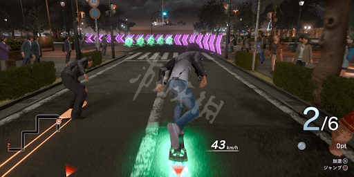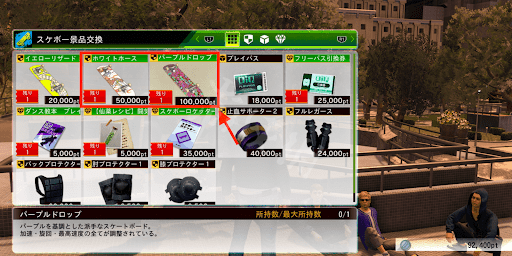 競速時加速和最高速度非常重要,在滑板社可以用點數換到最強的滑板“紫色水滴”,需要的時候可以攢100000pt去買。除此之外還有在賭場的獎品里有“黑色水滴”和DLC的“浮空滑板”也很強。