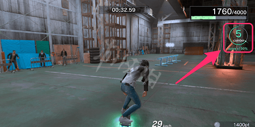 COMBO越多得分越高,最好不要斷。完成技巧之後在右上會有圓形的倒計時,需要在倒計時結束前進行下一個技巧才能連上combo。