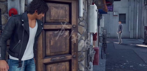 去昭和大街中斷,觸發劇情,調查模式,找到目標(牆邊穿紅色衣服的胖男子)。