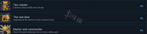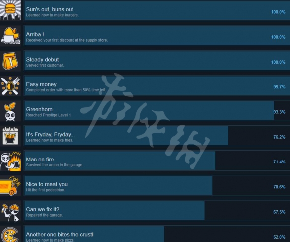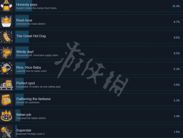 遊戲餐車大亨全成就列表一覽為大家分享完畢,對成就不是很了解的網友不妨先看下上面的成就截圖,希望對大家遊戲有幫助。