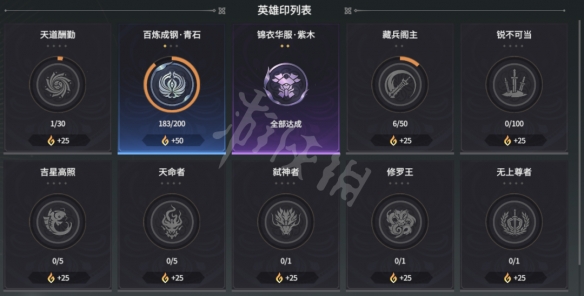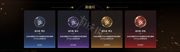 通過達成條件多種多樣的成就,取得不同類型的英雄印。