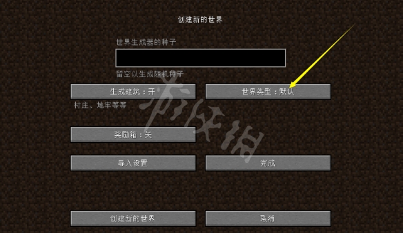 下圖箭頭所示就是修改世界類型的位置了,點擊即可切換世界類型。
