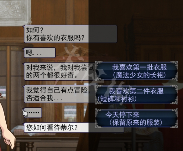 在與哈娜的約會中,會有一個買衣服的劇情選擇,分別是魔法少女衣服,短褲襯衫與保留原來的服裝。