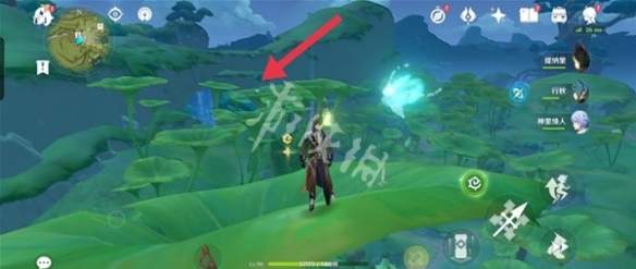 第二個仙靈到我標記點位置來,視角往上就能看見第二個仙靈了,然後接下來跟著仙靈一直走就行,走到終點後,華麗寶箱旁邊第二個符文也會亮起。
