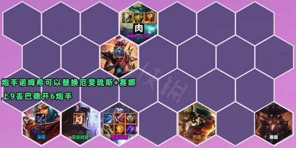 開局搶攻速或大劍等物理裝備。2-1拉4。2-E拉5。用厄斐琉斯帶裝備配黯靈重騎炮手打工或者澤麗/賽娜帶裝備配碧波格鬥/護衛過濺。