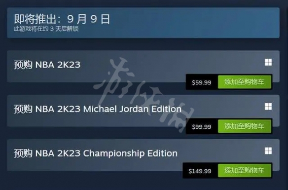 第3步:點擊《NBA2K23》進入到游戲詳情頁面,往下拉就能看到三個版本的預購,只要選擇自己想要的版本進行預購即可