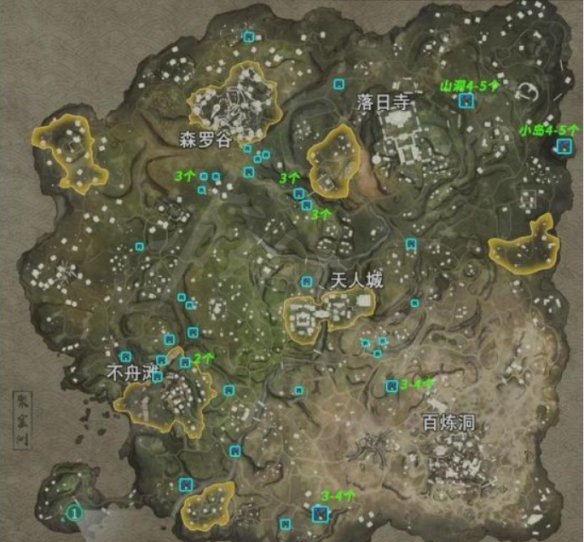 大家通過上圖可以看到,火羅國地圖之中的螢火蟲分布還是較為分散的。總的來說麥赫塔和唐安成附近區域的螢火蟲會相對較少,而長生寨和神鷹堡區域附近的會相對較多一些。