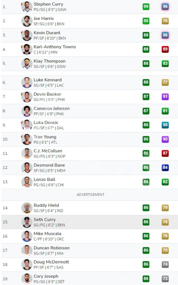 以上就是NBA 2K23三分能力值前十介紹的內容了,更多游戲相關資訊攻略請關注遊俠網,我們將會第一時間更新最全的內容幫助大家了解該游戲,一起來看一下吧。