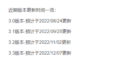 3.0版本的前瞻直播為8月13日晚20:00,更新時間為08月24日,也是相隔了11天。