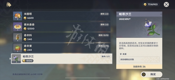 以上就是原神帕蒂沙蘭購買位置分享全部內容,想要了解更多相關攻略的小夥伴可以持續關注,這里每天會為大家推送最新最全的攻略,一定不要錯過哦。