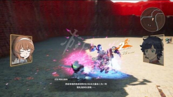 BOSS血量被打掉一半後就簡單了,眼鏡男會開著虔敬高達支援,這樣隊友倒下後,眼鏡男有概率吸引BOSS仇恨。