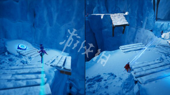 3.小梅繼續拖動冰雕,讓科迪能夠到繩索,然後科迪利用繩索到上層,上層會看到一個碎冰,踩碎後兩人會合。