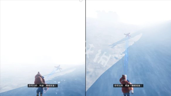 8.接下來雪崩不止的位置,需要拉著地標×移動到另一側,到下圖位置,一個人到對面,兩人人同時吸引,到中間區域,完成本關。