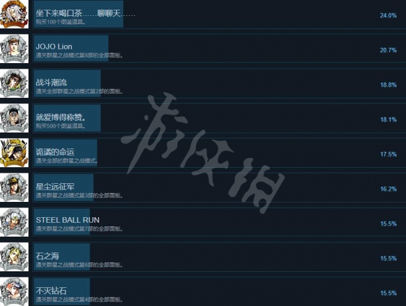 JOJO的奇妙冒險群星之戰重製版已經正式在steam平台解鎖,成就共有46項等待玩家收集,為了方便大家查看遊戲中所有的成就達成條件,這里給大家帶來了JOJO的奇妙冒險群星之戰re全成就列表一覽,一起來看下吧。