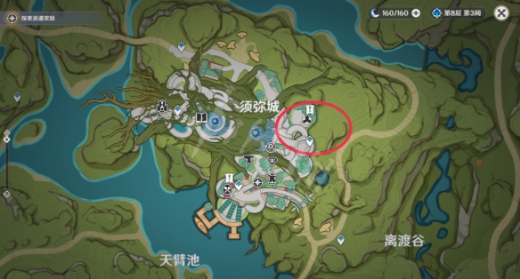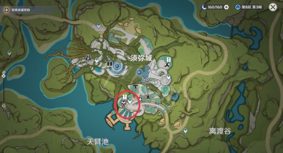 接著傳送到須彌城右邊的錨點,在教令院聯絡官所在房子的上方是第二個,也就是咱們平常完成任務升級聲望的那個位置。