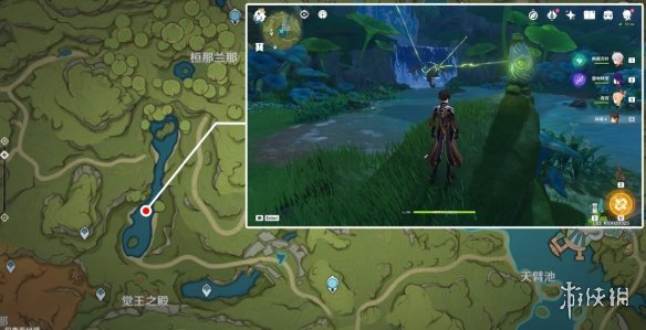 「大大鐵塊」全部解決掉了,但還有一處最厲害的「大方方鐵塊」需要我們解決。蘭提沙會幫我們把湖裡的最後一處水位也降下去,降下去之後我們從下圖所示的這條路往裡走即可。
