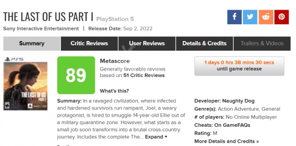 Screen Rant給出90分好評:對於喜歡該系列,並希望體驗PS5重製版的玩家,或者無法遊玩其他版本的玩家來說,最後生還者第一部是必玩的遊戲。但對於那些已經擁有其他重製版的玩家來說,這個價格可能讓人難以承受。