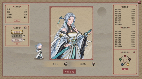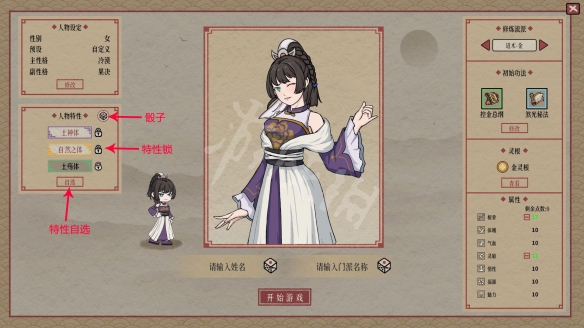 · 性格固定 — 當前版本除了劍修外,其餘三個角色模板的性格都是固定的,玩家創建時無法更改。