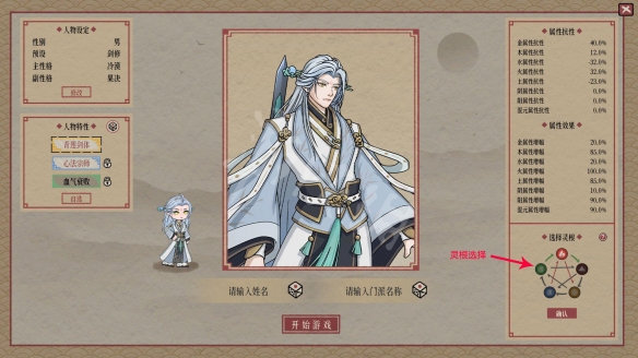 靈根會影響到角色的屬性抗性以及增幅效果。其中選擇道術類流派後,靈根是固定無法調整的。像選了道術-水後,那靈根也固定為水。