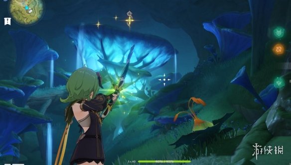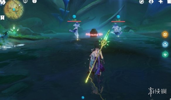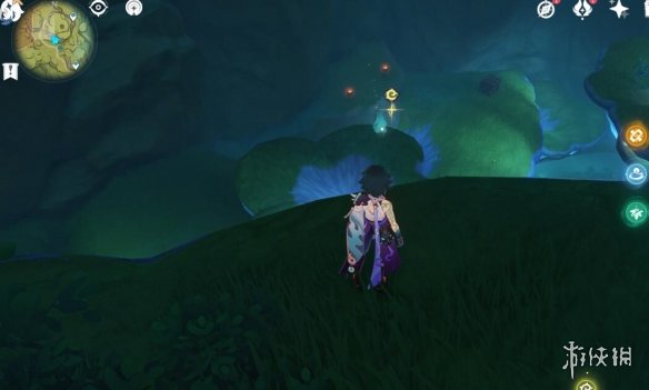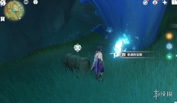 任務結束後繼續追隨仙靈,拿到歸位寶箱,路上遇到的丘丘人木樁都打碎可以拿到一個寶箱。