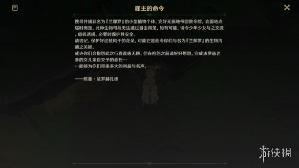 來到這一處可以拿到僱主的命令信件,和一朵風乾的花,回去找蘭魯迦對話。