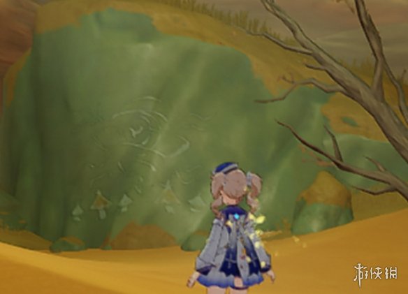 在洞底處有這樣的一個石壁,靠近後自動獲得該隱藏成就。