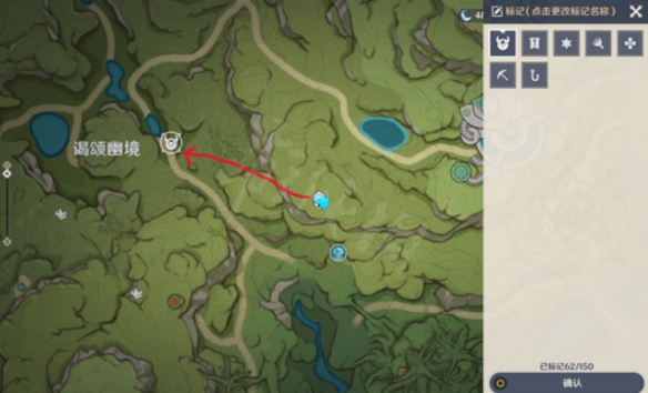 從七天神像往西走接取任務,由於我提前在不知情的情況下接取了,圖中拿標點替代