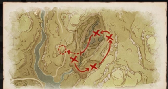 拿到低語的羊皮卷後就可以去圈圈地了,這里最好是跟著做吉祥具書的任務到小寶的手臂放下,旁邊可以跳下去開啟地下錨點的時候再做,從地下錨點直接往下跳,會看到一個帳篷前面有四個火把
