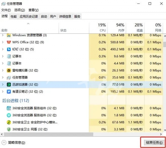 3.關閉過多應用。因為游戲運行時會佔用較大的內存,如果電腦內存不足就會導致游戲出現問題,建議打開任務管理器,關閉與游戲無關的進程。