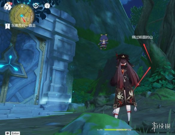 來到秘境後朝著地圖東南方向走,從右手邊繞過面前的山。