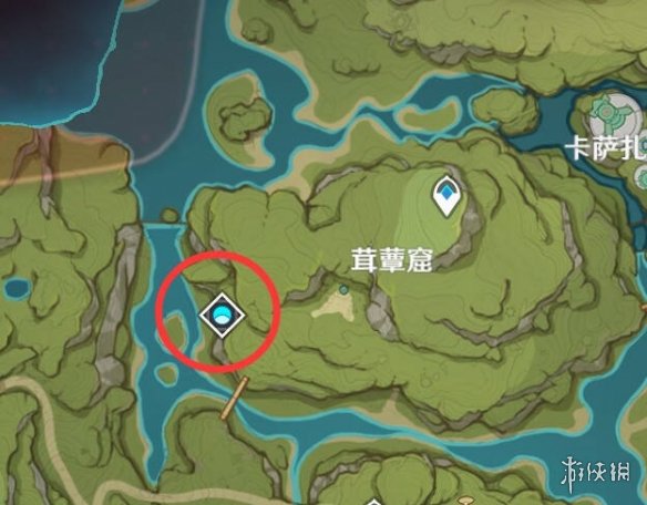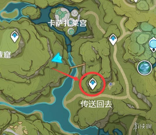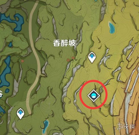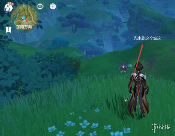 來到傳送點後,朝著地圖的東南方向走。走到我圖中標的那個坡。