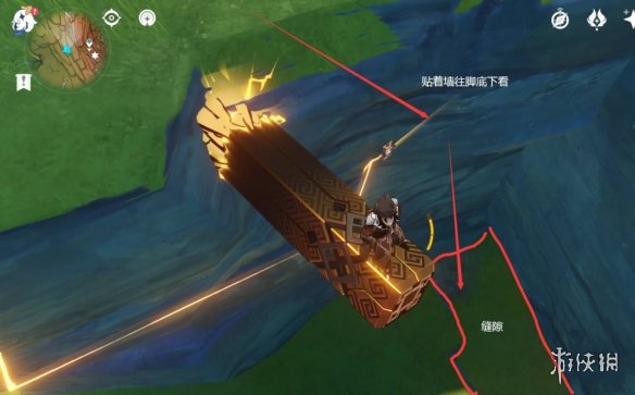 來到這個平台後,貼著牆壁朝著面前往腳底下看,就能看見一個裂縫,進去就是最後一隻。