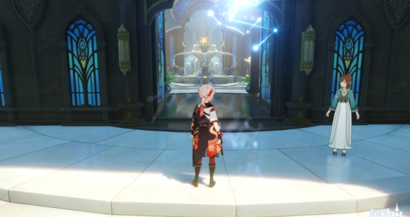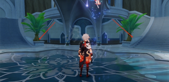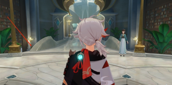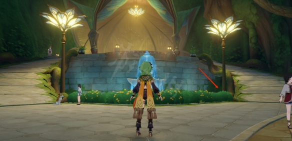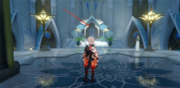 首先來到這個傳送點,可以看到前面一個門,進去之後到了教令院。進去以後一直向前走,進入智慧宮。