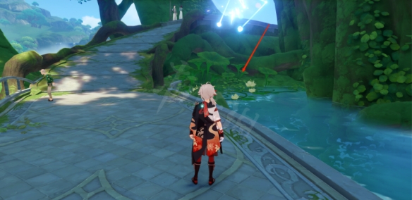 把時間調整到黃昏時,在天臂池上面有一個港口,港口有一個燈塔,燈塔下面會發現一個摩拉盒。