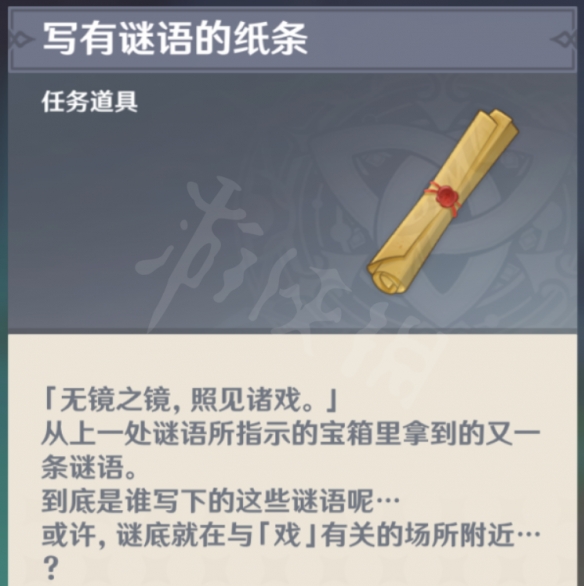 打開摩拉盒之後會得到第二條謎語:無鏡之鏡,召見諸戲