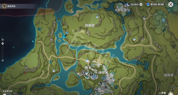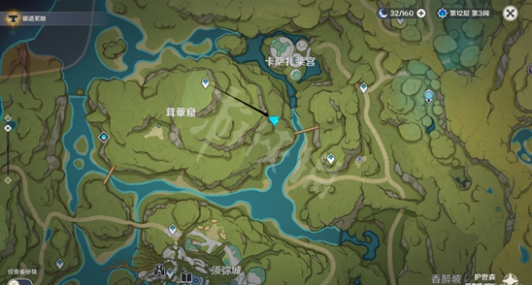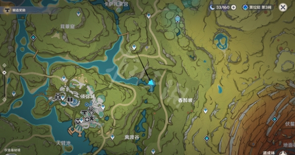 1.來到茸蕈窟傳送點,直接飛往東南方向的這個位置,這邊可以找到一個npc,與npc對話,得知他是來自楓丹的獵人桑頓,想要防止一些森林裡的凶獸,根據他的提示有三種兇猛的動物,並且提供了大致方位。