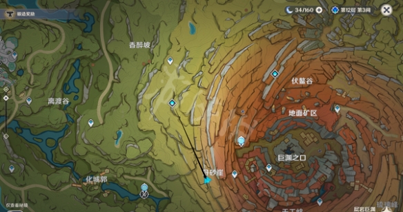 來到緣覺塔副本,向東南方向層岩巨淵的丹砂崖方向,一路向下走。