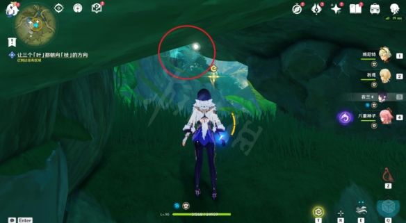 (5)轉動石頭,讓三個葉都朝向中間的枝(洞口有個仙靈,跟著它,它會帶你找三個葉)