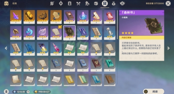 我們可以再背包中打開「森林書」來查看自己需要完成的任務