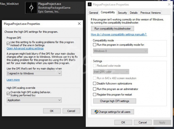 右鍵單擊 .exe 文件並選擇屬性 > 兼容性 > 更改高 DPI 設置 > 選中這兩個復選框。