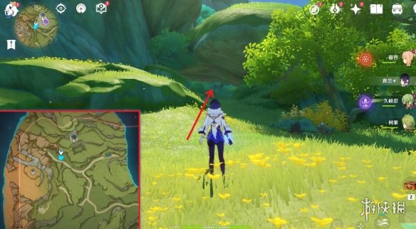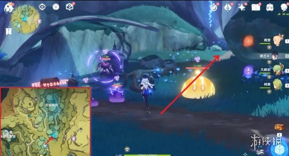 先傳送到無郁森林的七天神像,在下圖位置,可以看到雷史萊姆和雷丘丘法師。