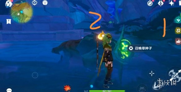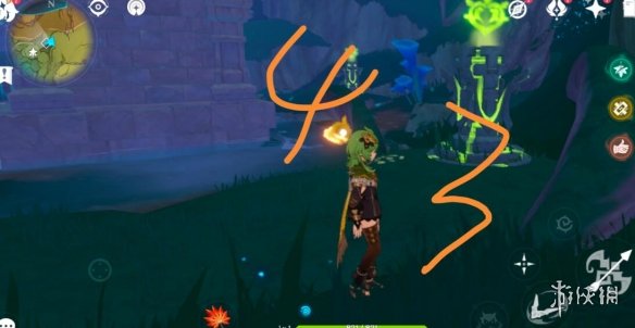 然後用草系角色跑到如下圖3號位置(射牆)。