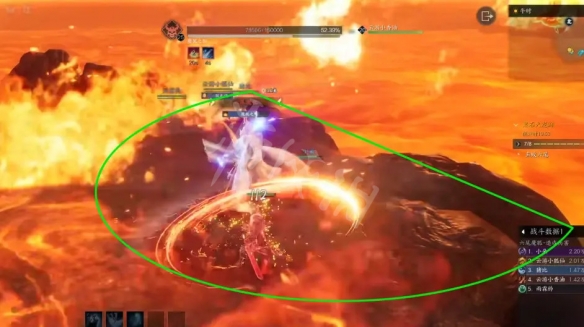 火龍頭:第一次的火龍頭會生成在BOSS靠近懸崖的地方,噴射一次直線的火焰,同時BOSS自身會有一個圓環狀的擴散傷害,需要在躲避龍頭噴火的同時跳起來躲過圓環。
