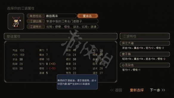 這把特性選的時候我比較滿意,我打通後就覺得跟屎一樣。三個減悟性特質導致我不得不花點數在悟性上不然卡不到20悟性然後我的斗轉沒辦法升到24級,後面我沒辦法才把童子身洗掉。
