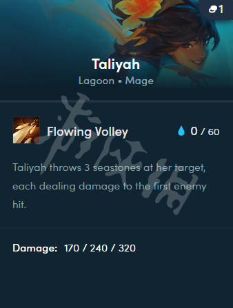 塔莉埡向目標投擲3枚海石,每枚對第一個擊中的敵人造成170/240/320魔法傷害。