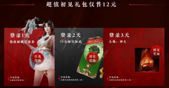 商城上架超值【初見禮包】僅售12元,購買後登錄三天即可全部領取。