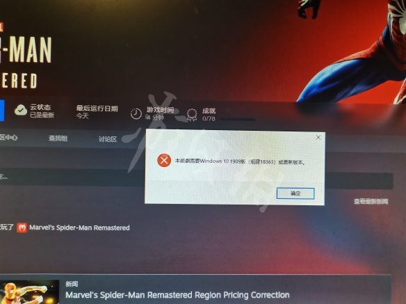漫威蜘蛛俠很多玩家遇到了提示“本游戲需要windows101909版或更新版本”提示的玩家可以嘗試以下方法解決:
