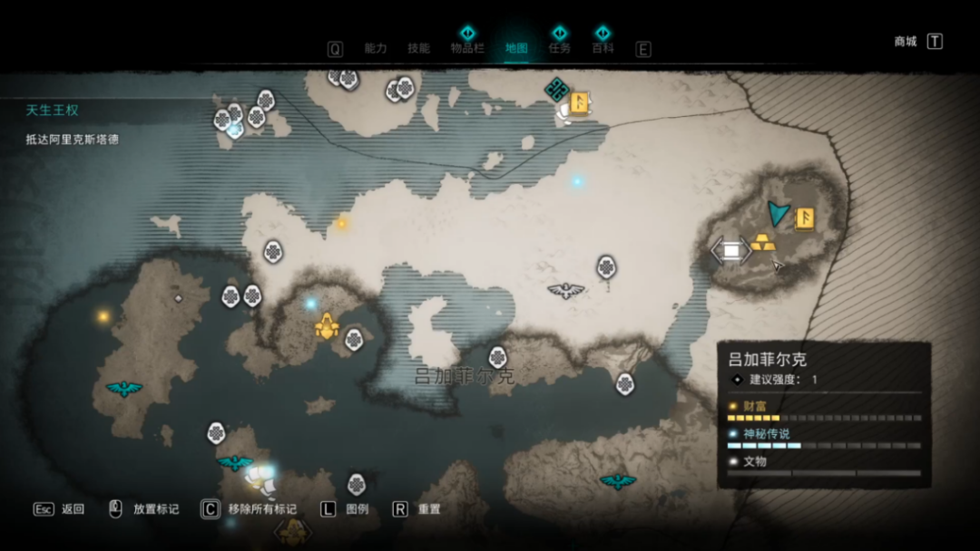 在任務系統上,《英靈殿》取消了復雜繁瑣的支線劇情還有原來地圖上滿屏的「問號」。遊戲的主線任務變得十分明確,劇情也變得非常緊湊。支線任務被取而代之為地圖上被清晰標出的「神秘傳說」 ,玩家在推進地圖的過程中可以選擇隨時推進這些短小精悍的小任務。而任務的劇情和攻略方式也都被精心設計過,重復率極低。除了「神秘傳說」玩家在大地圖上還可以探索到「寶藏」和「文物」。三種不同探索目標所對應的獎勵各有側重,玩家可以根據自己對物資的不同需求,有目的的進行探索。