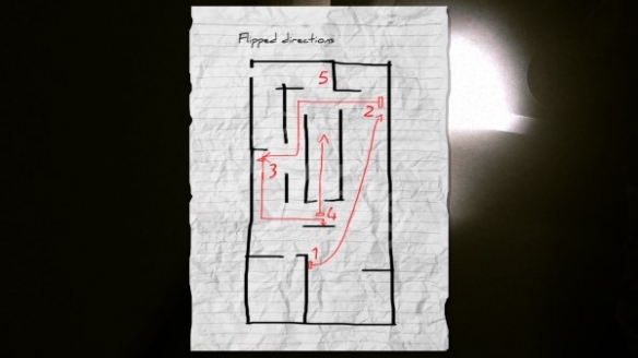 顯示屏上的符號對應字母,符號的答案在顛倒房間的保險箱里。背景顏色表示字母順序,順序在顯示器旁邊的便簽上。